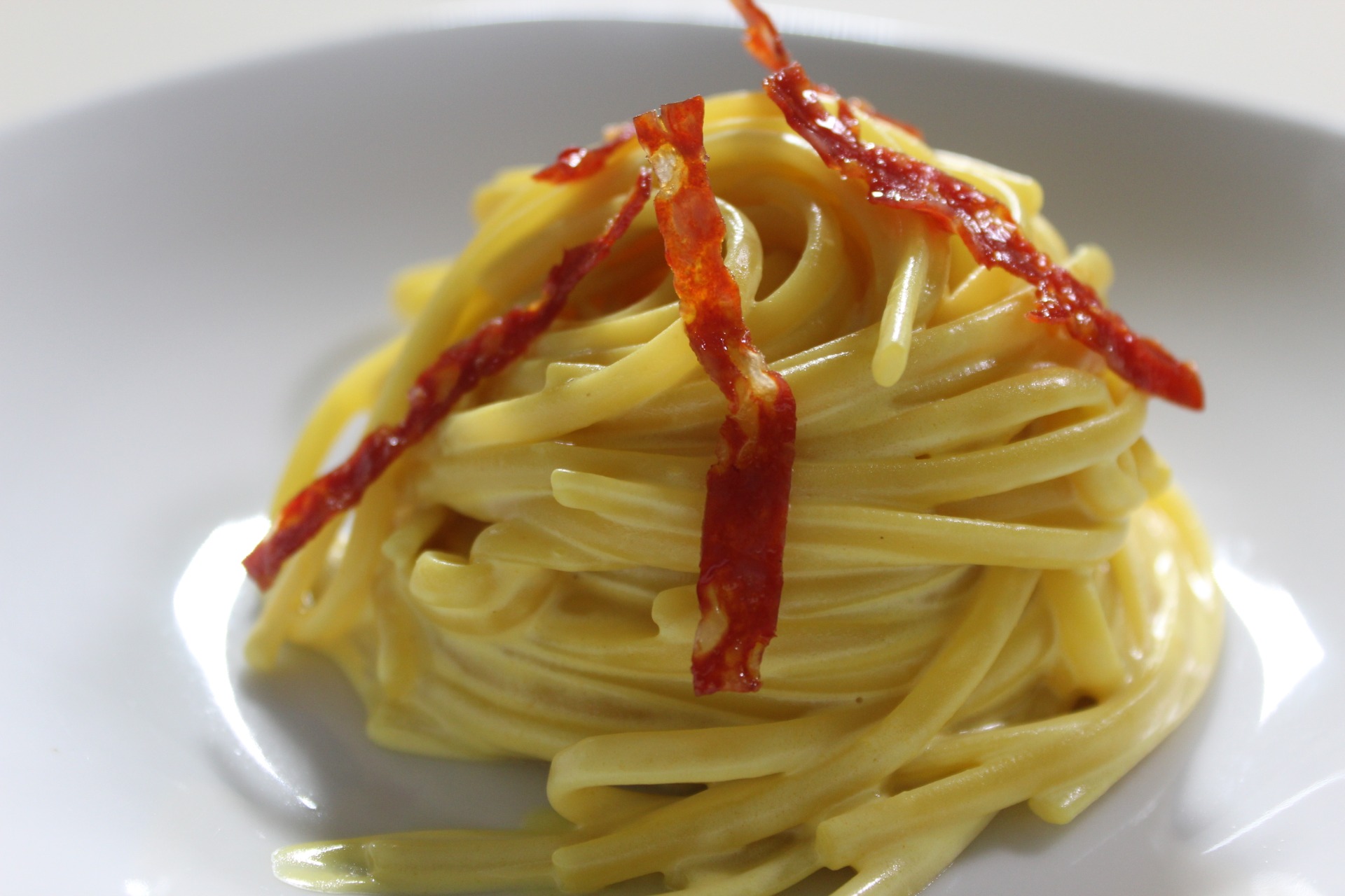 Linguine crema di zafferano e spianata calabrese